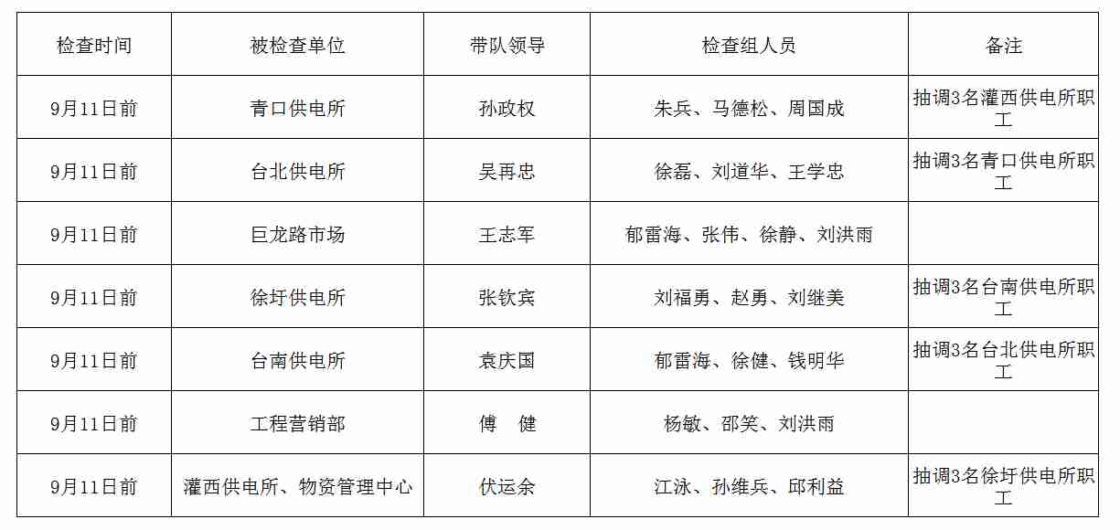 公司2019年雙節前(中秋、國慶)安全大檢查日程安排