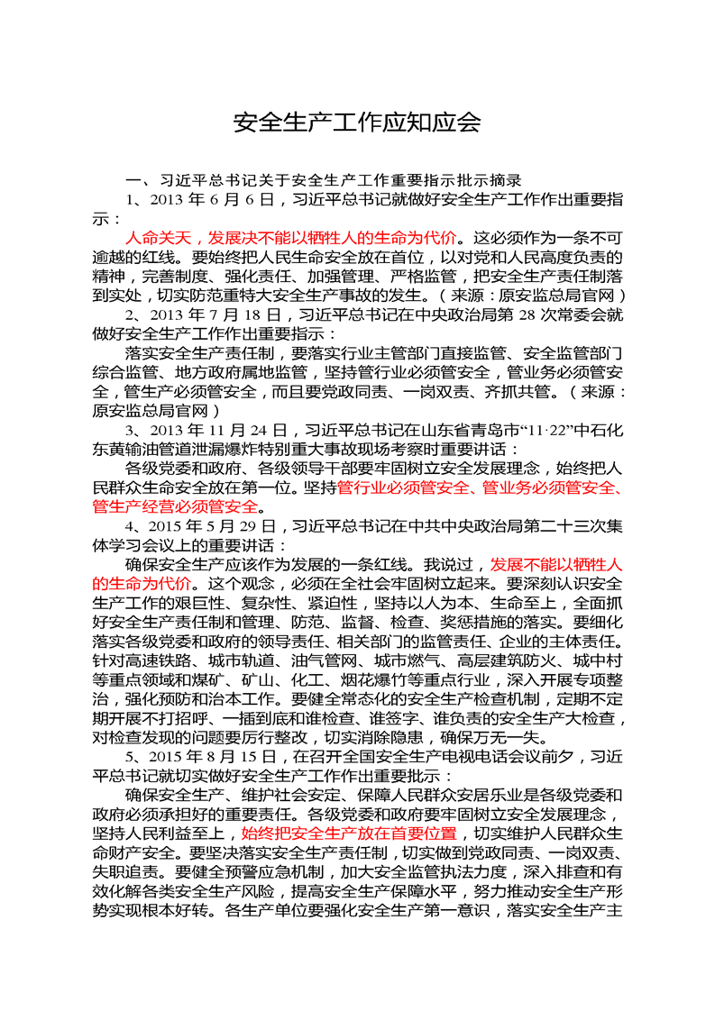 安全生產工作應知應會