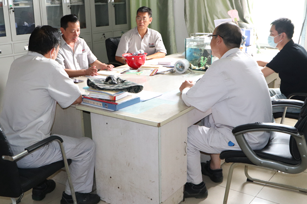 (圖為8月12日下午,部分黨員聯系結對班組)